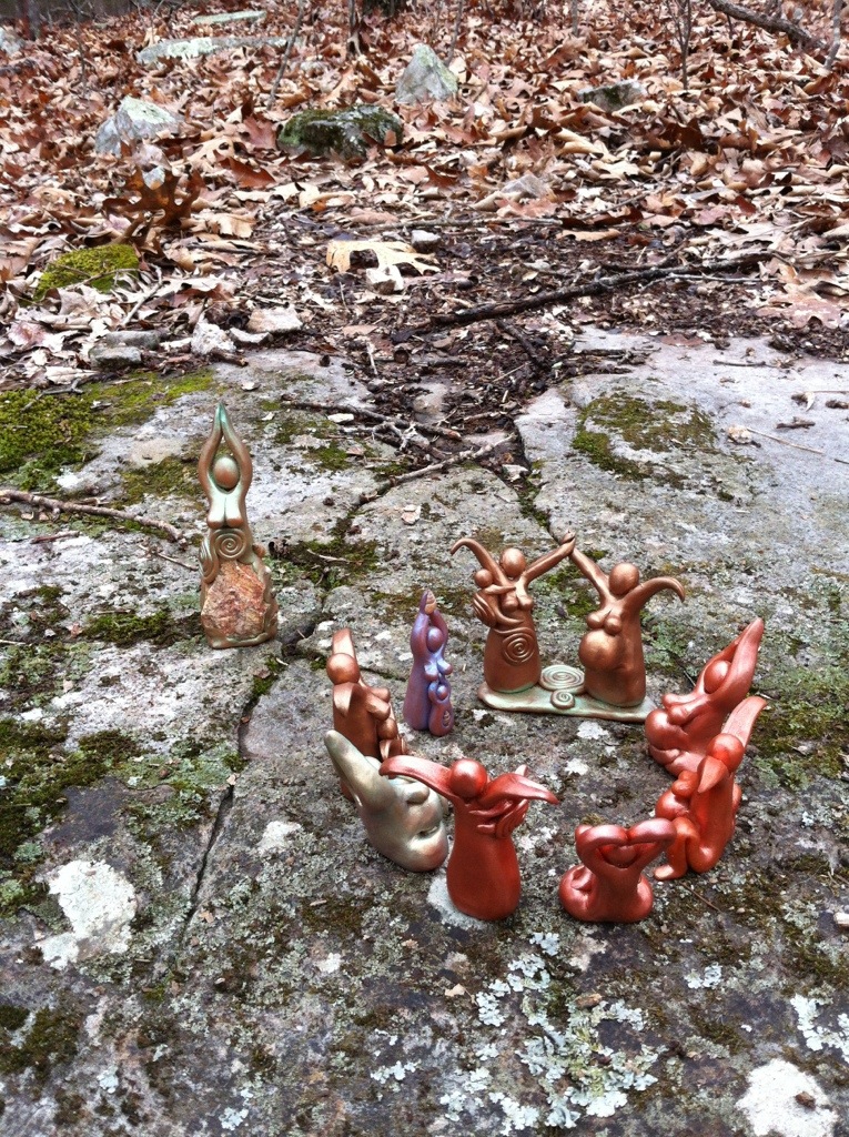 During our last women’s circle meeting we talked about our personal cultural histories and we began work on “sacred bundles” that we will continue to add to throughout the year-long course. I added photos of my ancestors, a fossilized stone shell, (because the Earth itself represents the shared cultural history of us all!), and one of my own Goddess sculptures and I tied the bundle with a Goddess of Willendorf necklace. I surprised myself by bursting into tears when I tried to explain the significance of my items, feeling the swift swirl of time and how those grandmothers in my pictures are now gone, but they were people, just like me. I also shared about the deep connection I feel to the land I live on and how my parents moved here in the 1970’s, so maybe this isn’t really where I “come from,” but that this is where my blood and roots belong. I continued crying as I described how when I sculpt my little figures, I feel like I’m part of an unbroken chain that stretches back at least 35,000 years, from the person who carved the Willendorf Goddess, all the way down to me with my rocks and clay. Later that week, my dad said he needed to talk to me and he shared that in our family history it is really only HIM who “broke the chain” of being “from” this exact patch of the Earth, here in Missouri. He was actually the only member of his side of the family in a long time who wasn’t born here and that, in truth, six generations of my family were born, lived, and died within a 25 mile radius of this very hillside that I find so meaningful. He said that he feels like his blood called him back here and he returned to this land as a young man and raised his own children here because it called so powerfully (I was born one mile from where I now live). So, he said, no wonder you feel like this is your cultural heritage and where you belong. Your lineage is right here, right where you like to be.