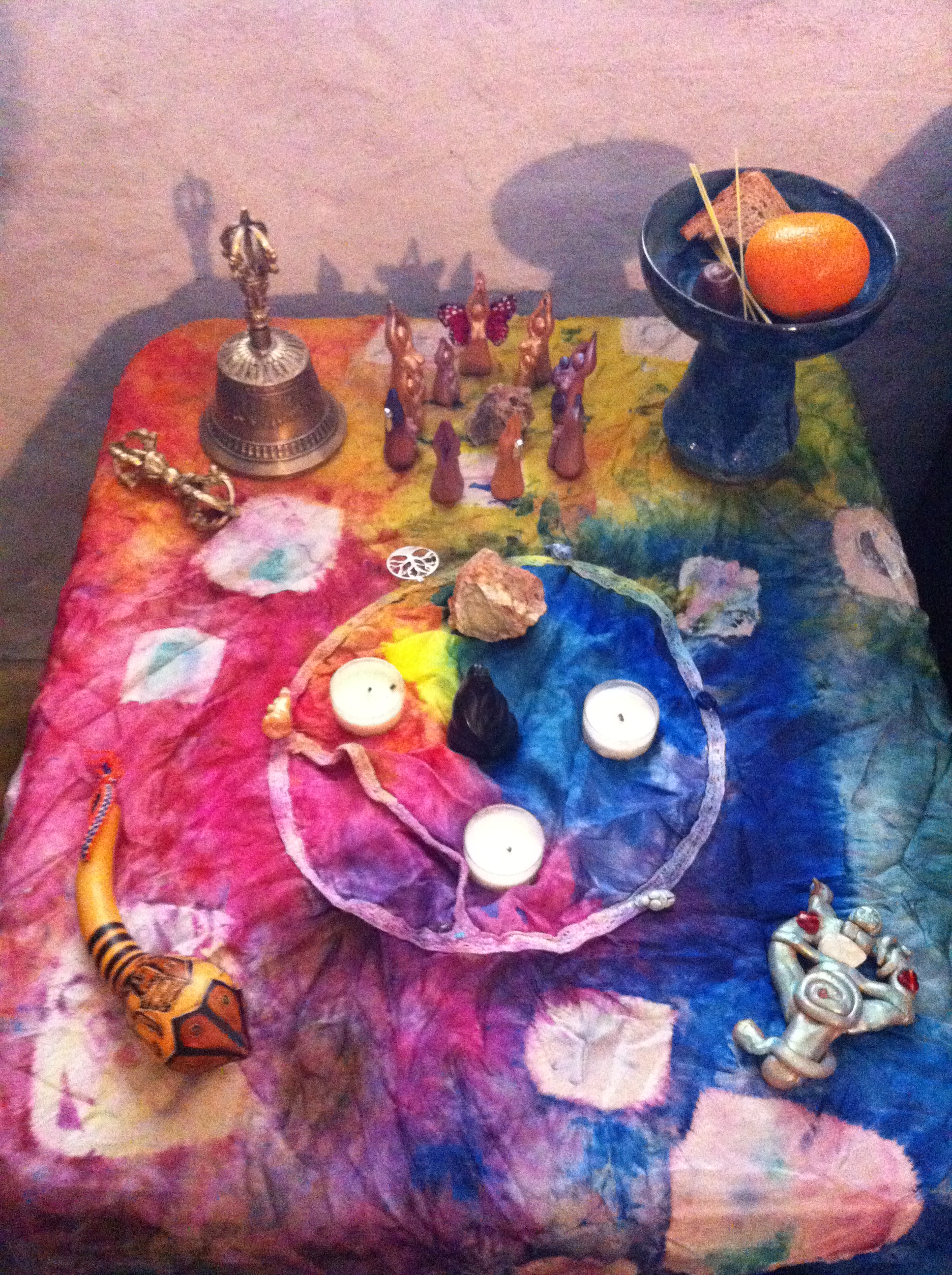 I do appreciate that over-reading can contribute to a lack of life in the ritual and I’m gradually finding a good balance there. I know that in my personal experience of them, our women’s rituals have improved in the feeling like they are working as we’ve continued to refine our approach and choose our words and activities. We moved away from including a time for general talking and discussion and into more structure, which helps “hold” the energy and momentum of ritual, rather than letting it leak out in the form of side conversations or long personal stories. (Conversation.discussion then happens after we end the ritual and have potluck snacks and make a project together.) In another book I just finished reading, Jane Meredith explains the layers of ritual: