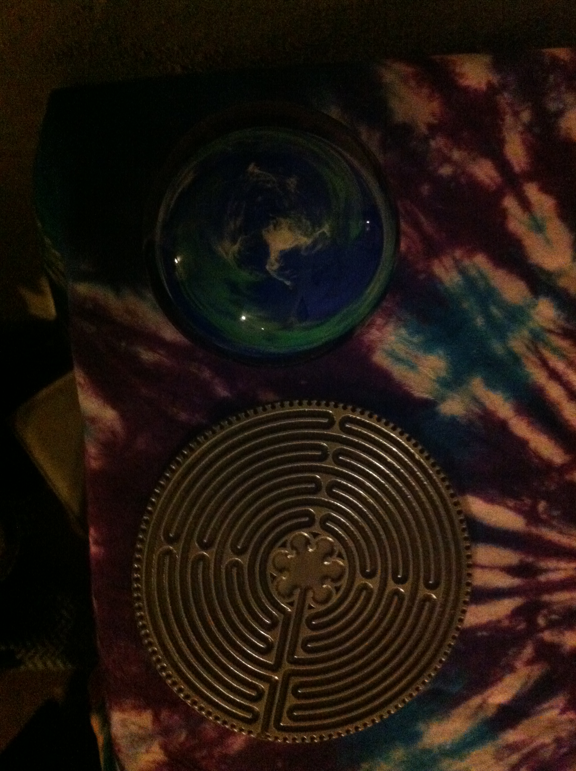 I added an earth paperweight and a labyrinth to represent travel and journey-taking.