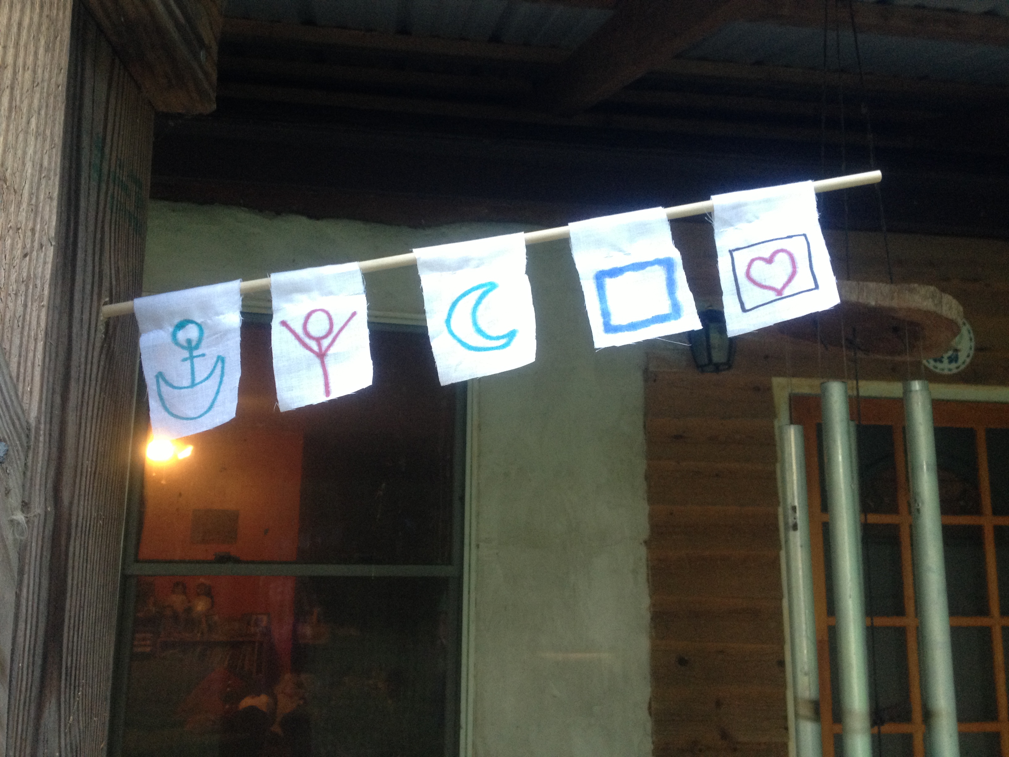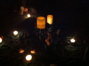 Participants circle up and place hands on each other’s backs and do a group hum of, “Om” and then toning with a bell.